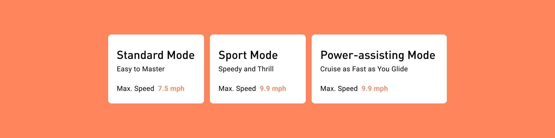 Switch between the 3 ways riding modes by double-clicking the power button!