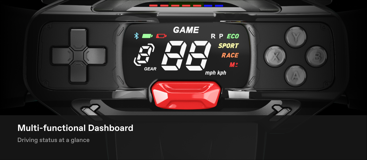 Listen to the roar of your GoKart and select how you want to ride. Included with purchase. Connect via Bluetooth and listen to your favorite music or to the roar of your Gokart and select how you want to ride.