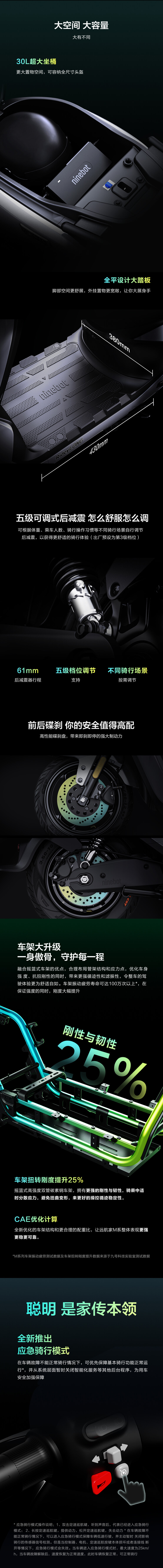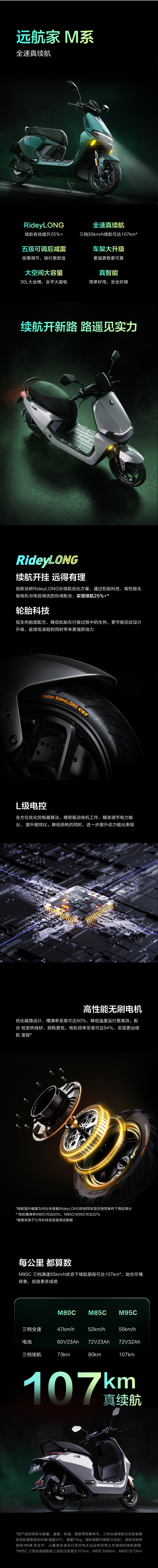 创新自研RideyLONG长续航优化方案,通过轮胎科技、高性能无刷电机与电控调优的协调配合